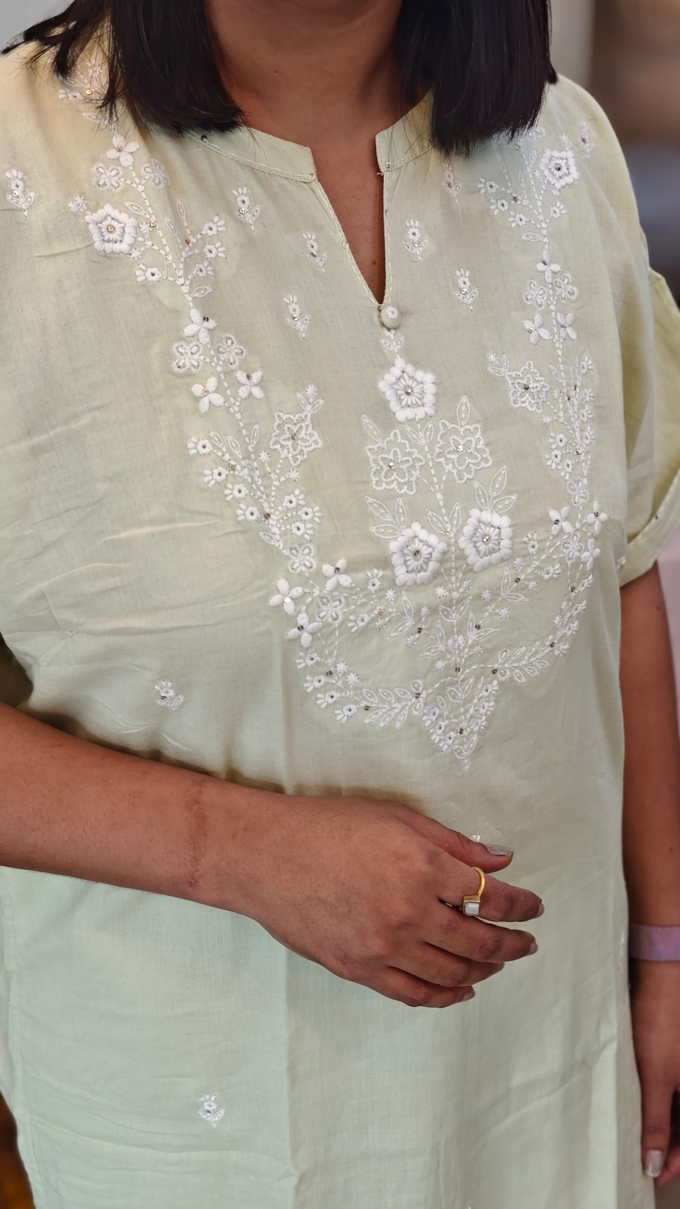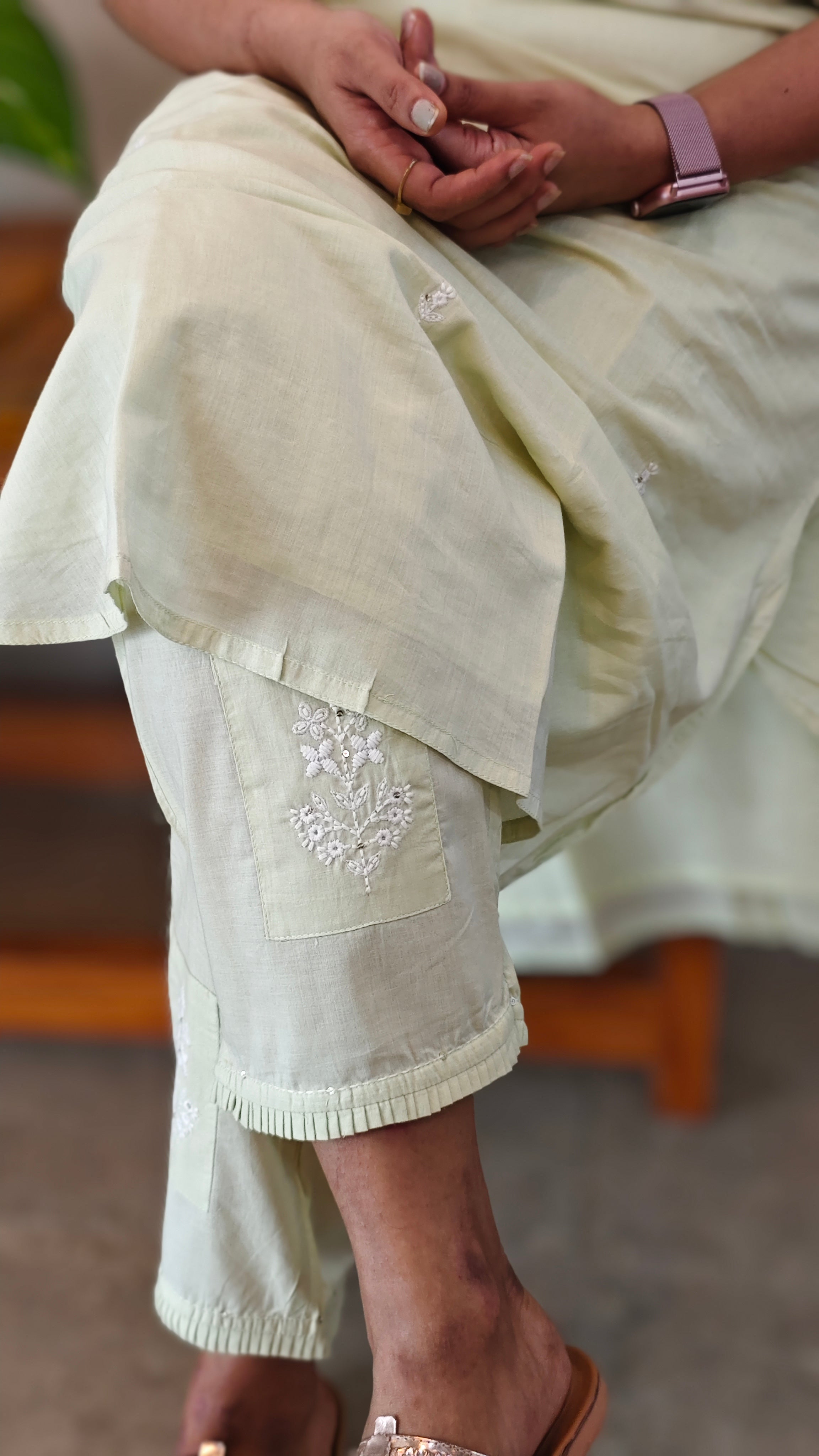 Pastel green kaftan sleeve kurthi set