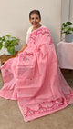 Pure handloom raw silk saree with ikat borders and contrast blouse piece