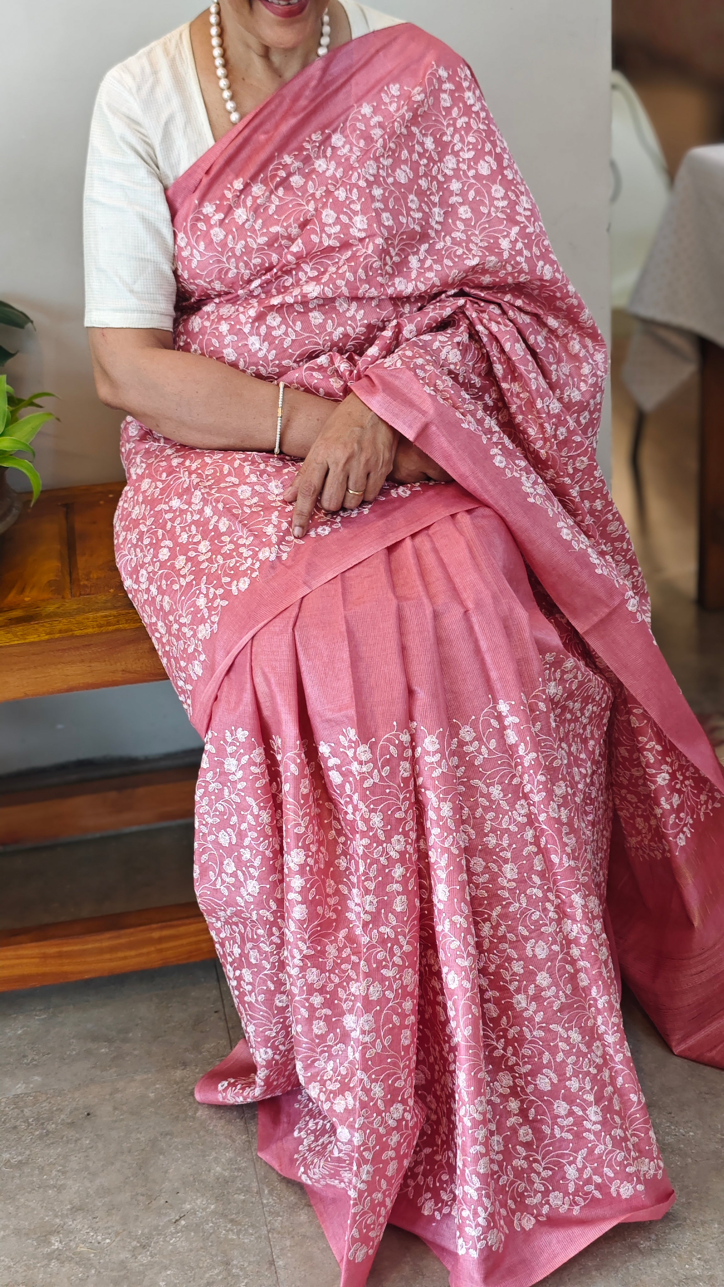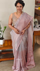 Blush pink embroidered tussar silk saree - KJ87