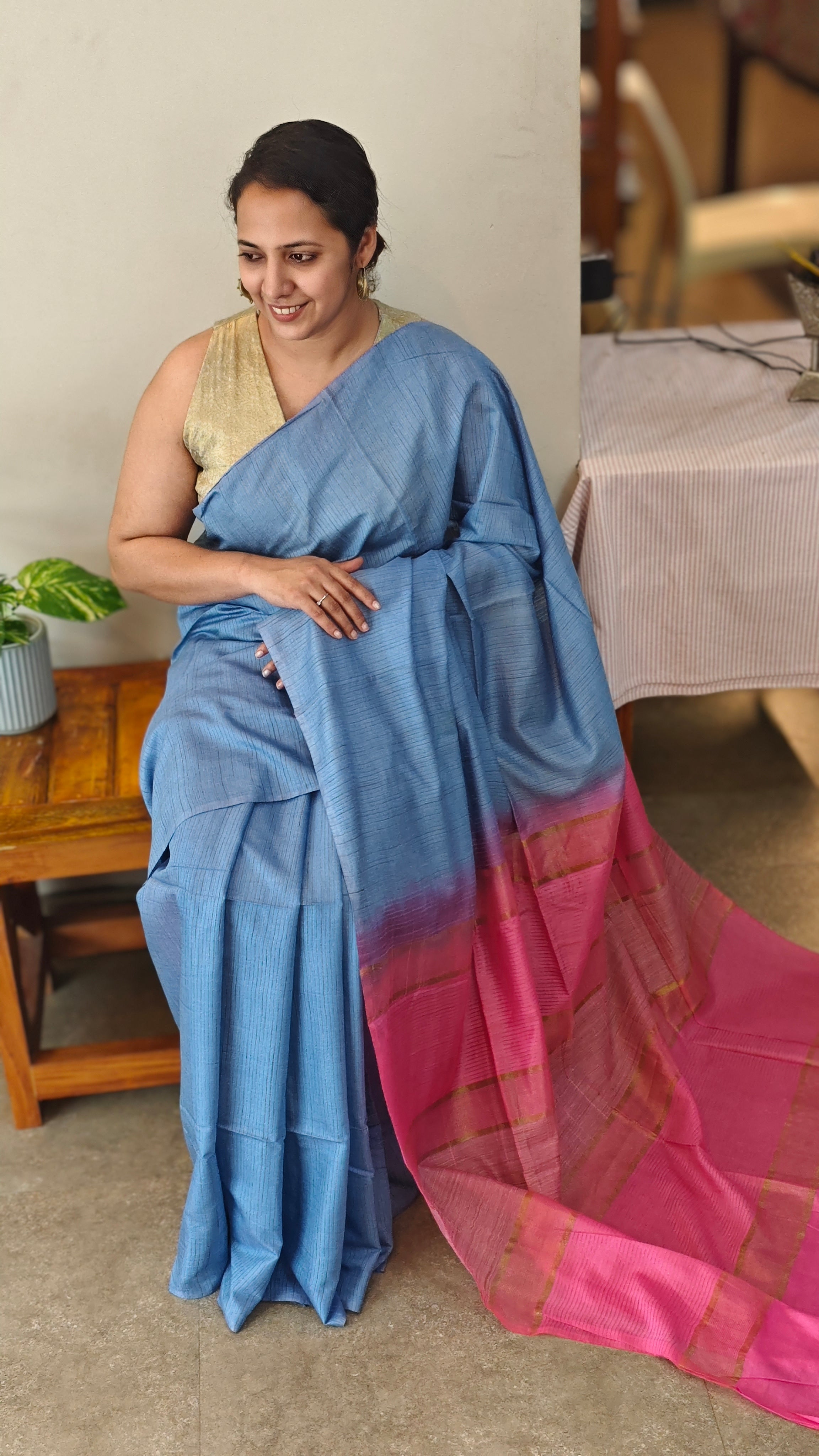 Bhagalpuri silk saree with contrast pallu and blouse