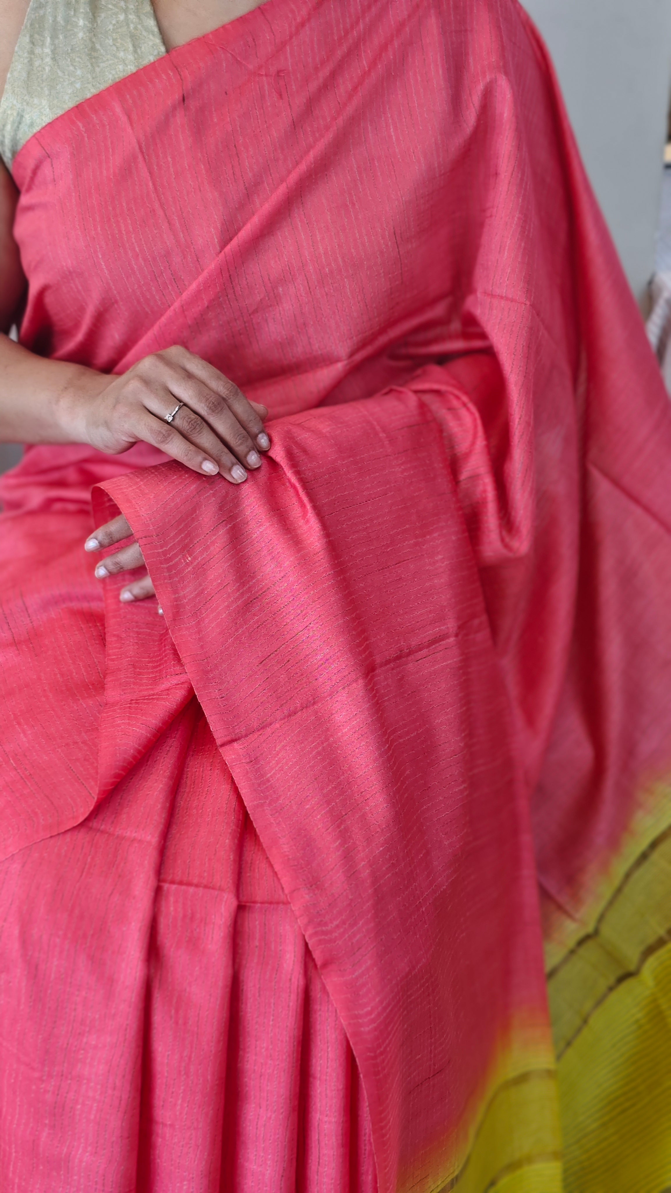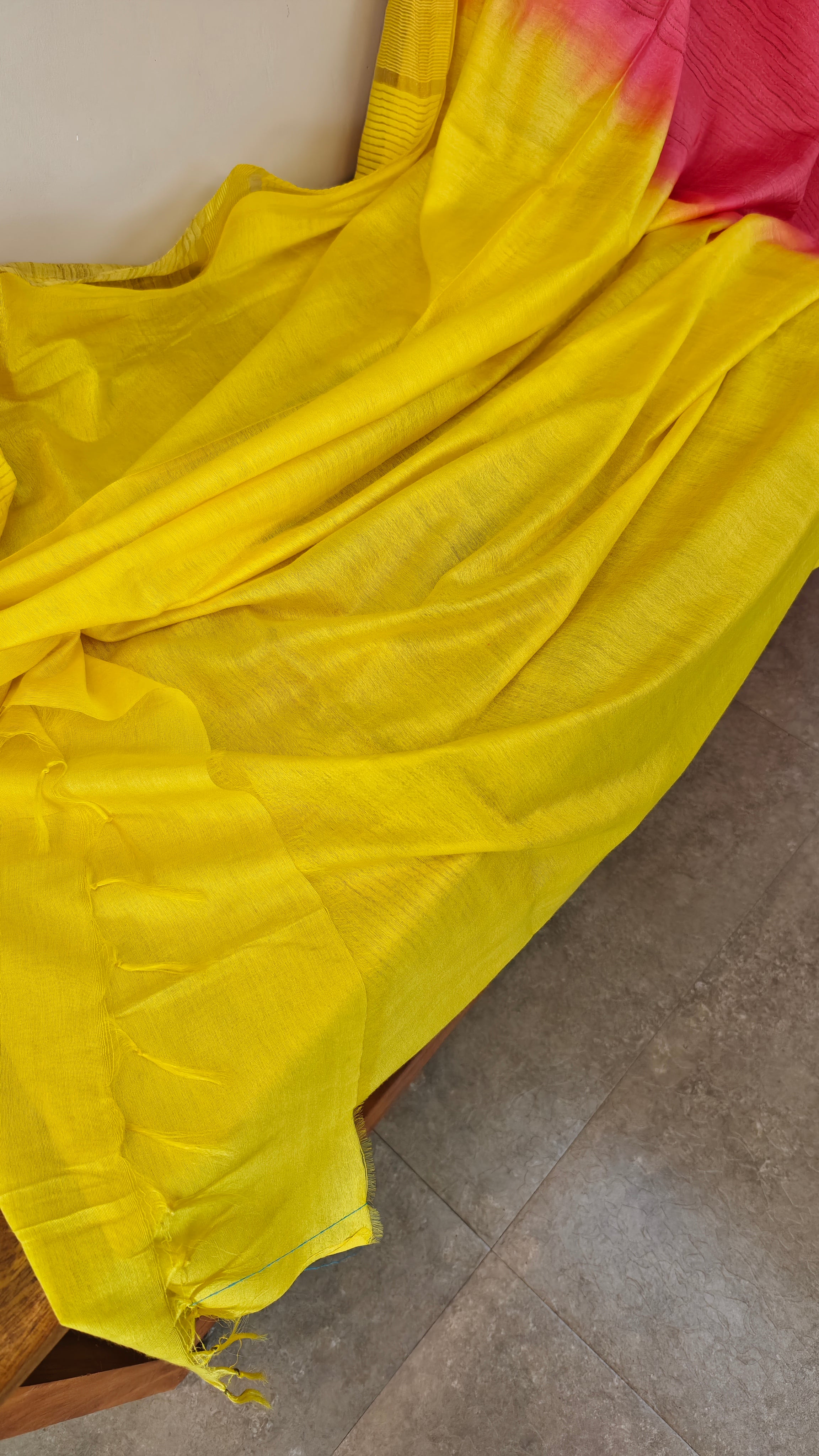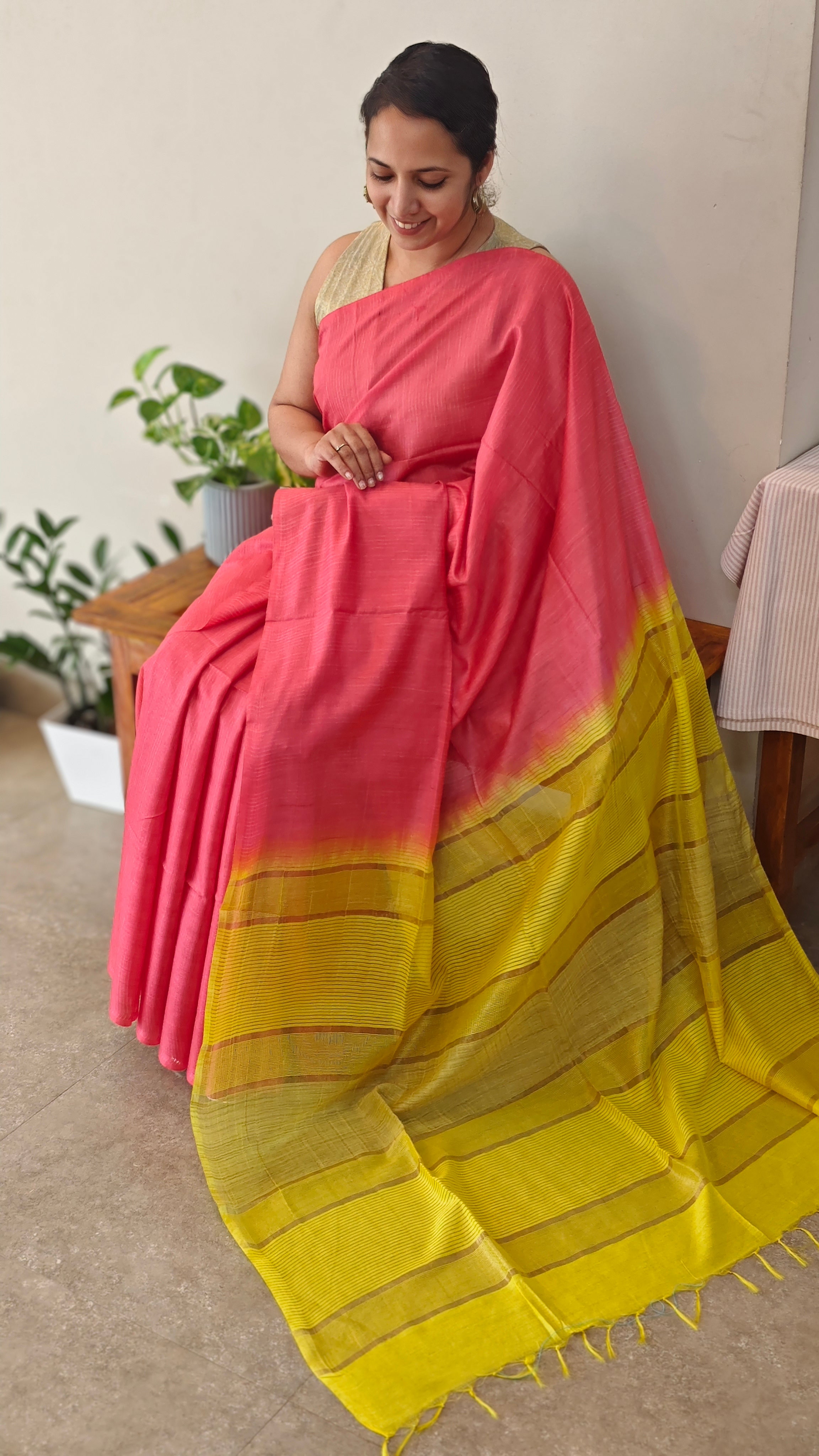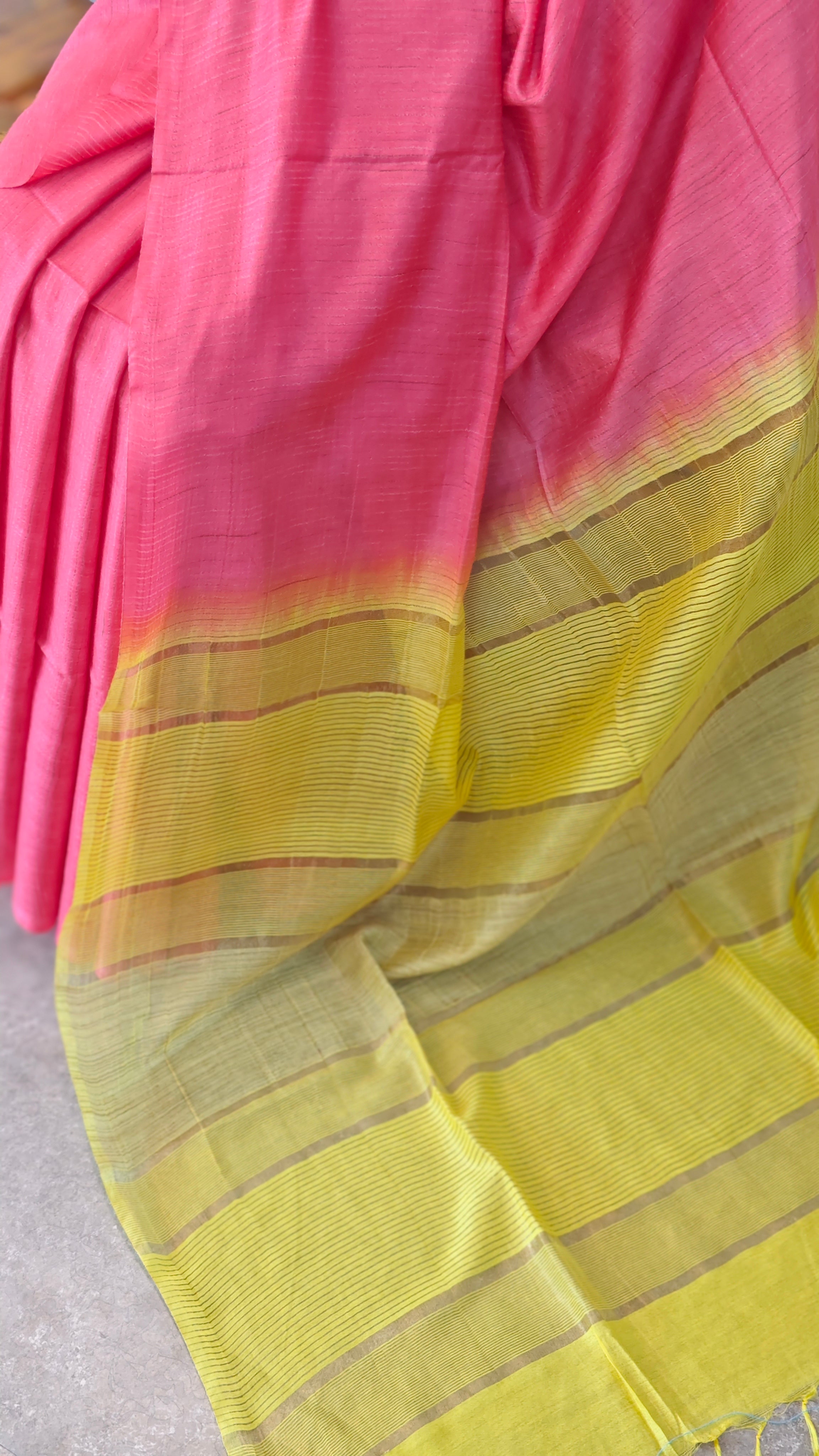 Pink and yellow bhagalpuri silk saree