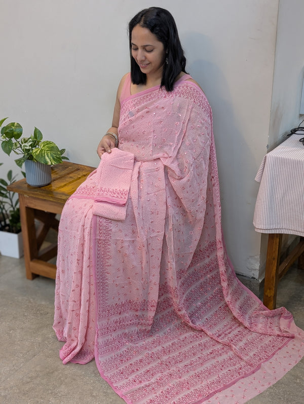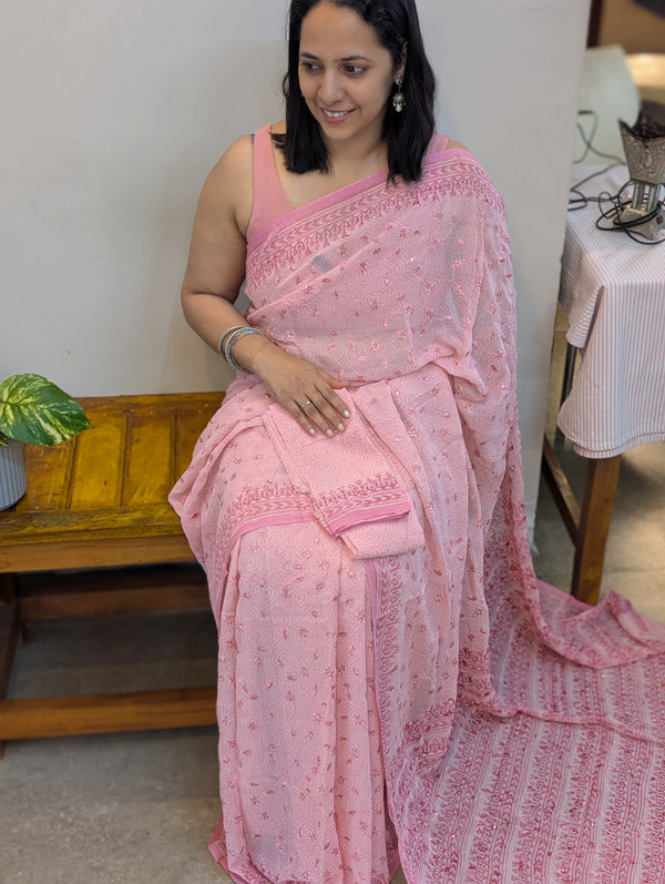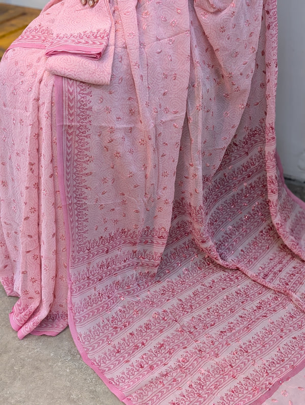 Pink georgette embroidered saree