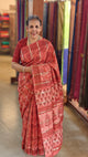 Pink net kota saree with cross stitch embroidered pallu and borders