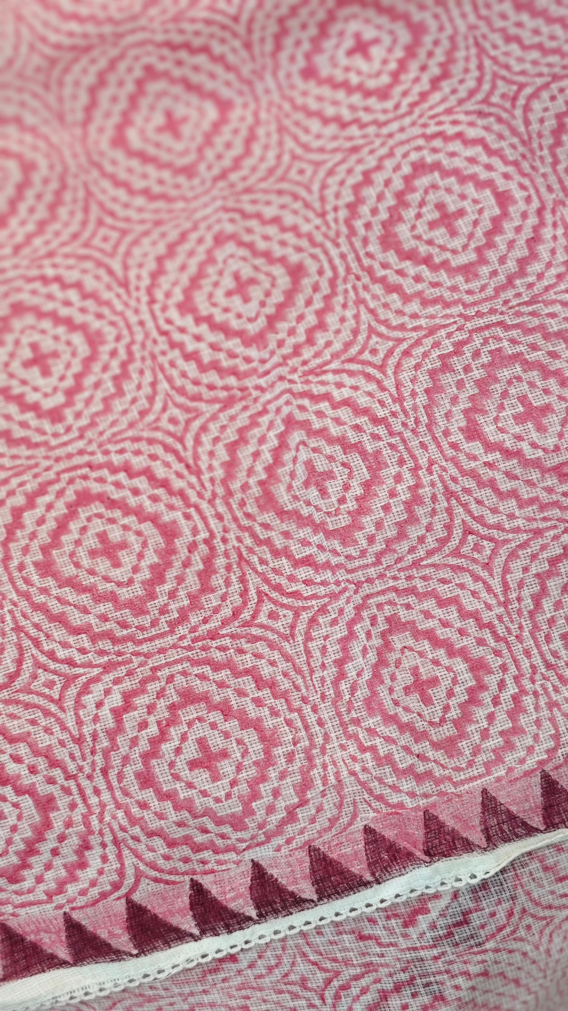 Geometric block printed kota saree