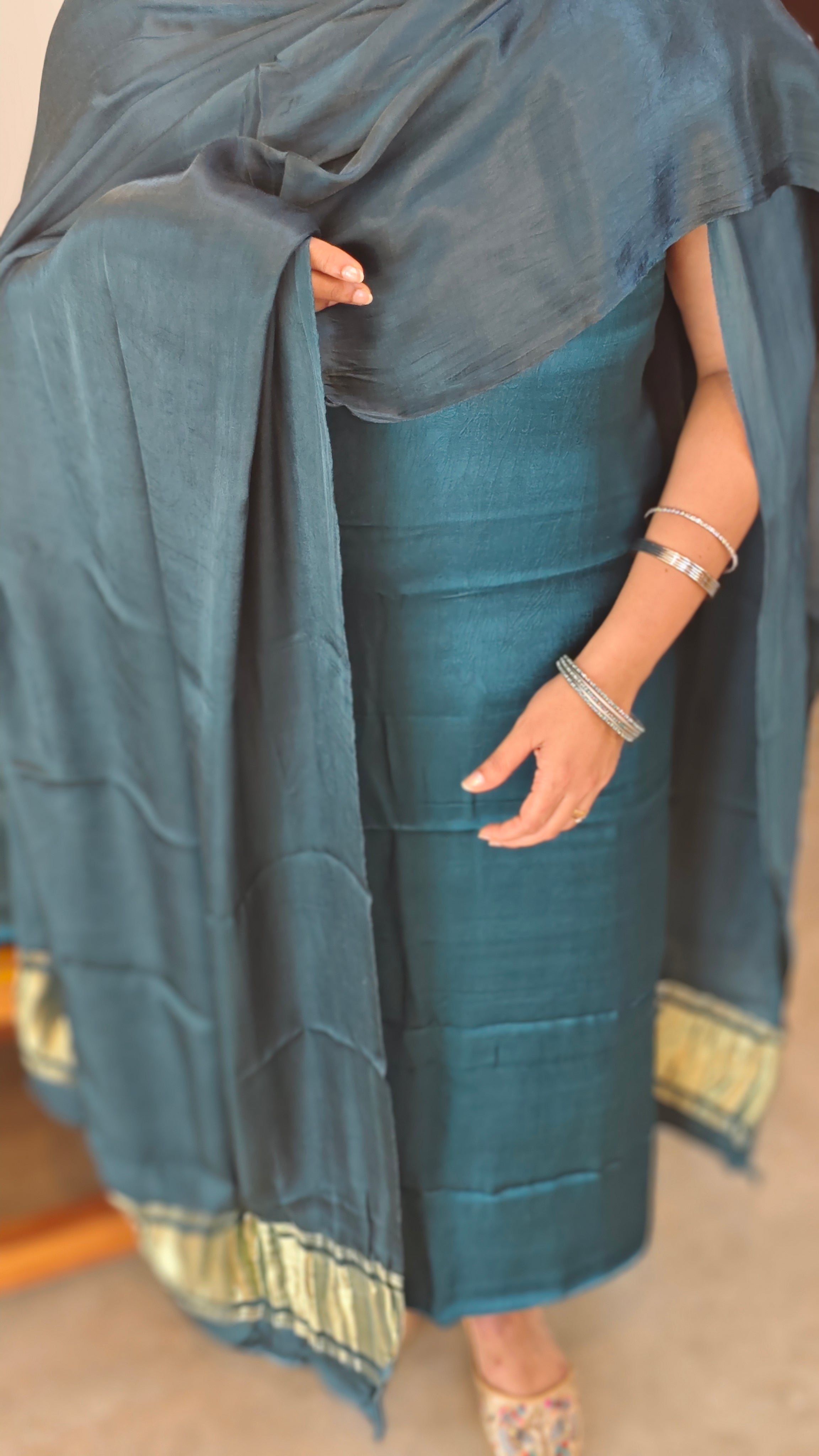 Bluish green modal silk suit