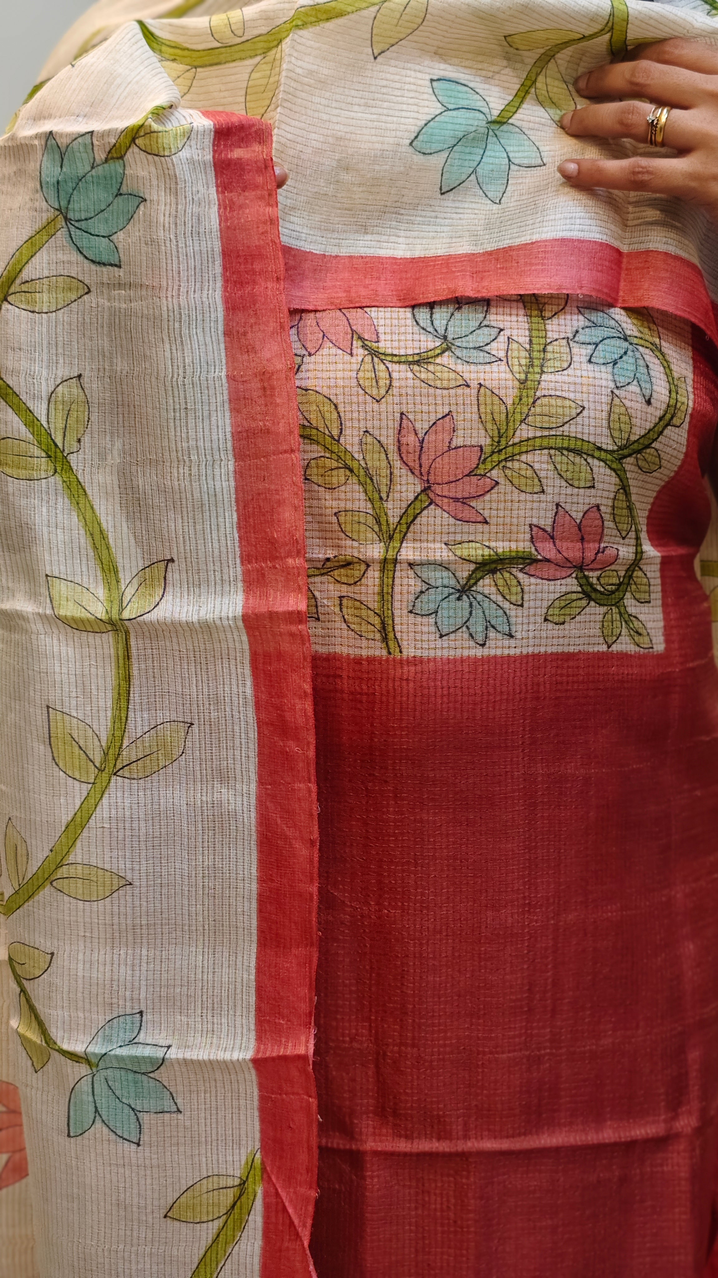 Brick red tussar silk suit with hand painting