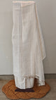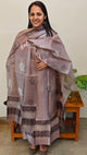 Dark green block printed tussar silk suit paired with an embroidered off white tussar silk dupatta