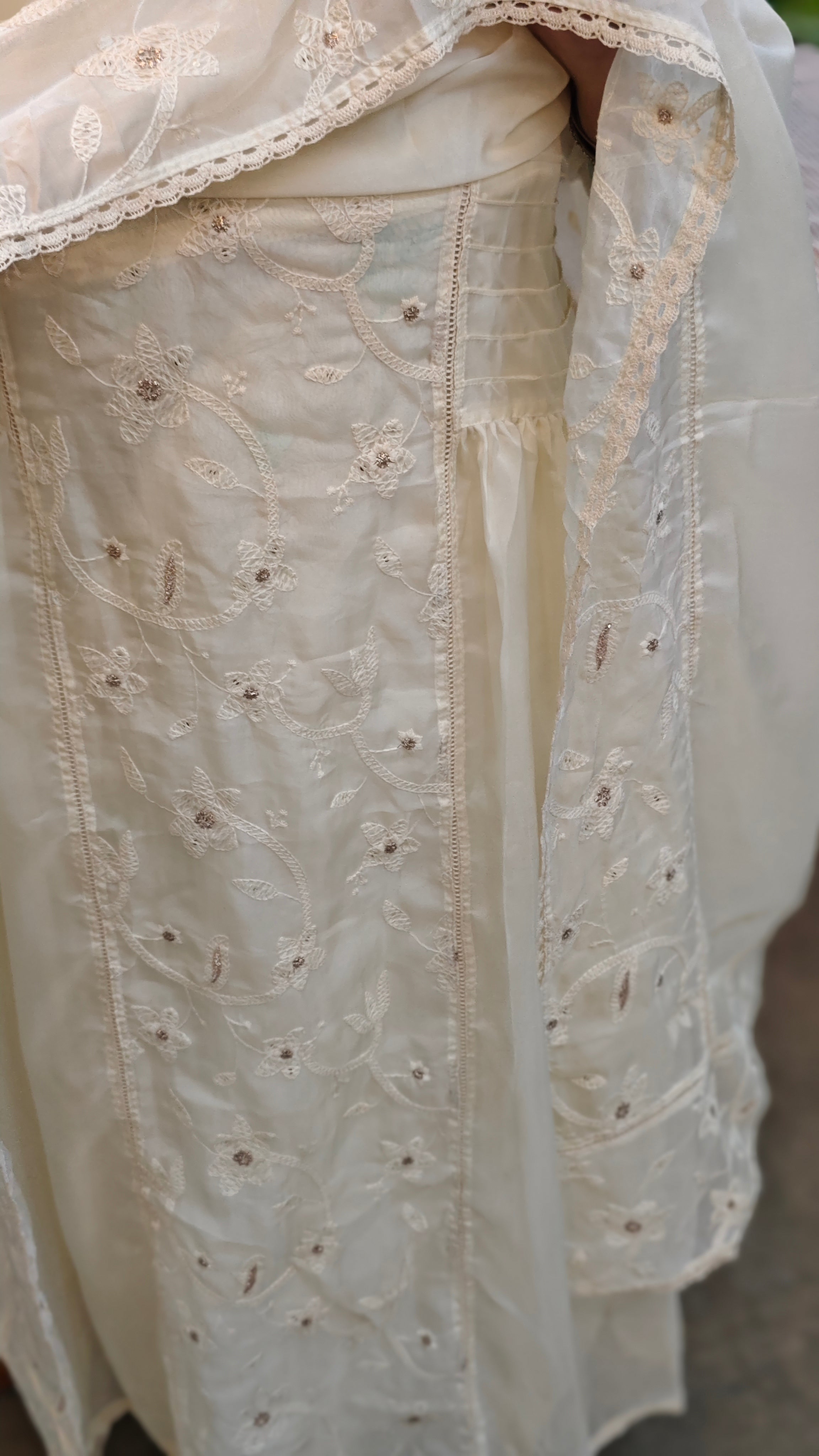 J690 - cream flowy organza 2 piece suit
