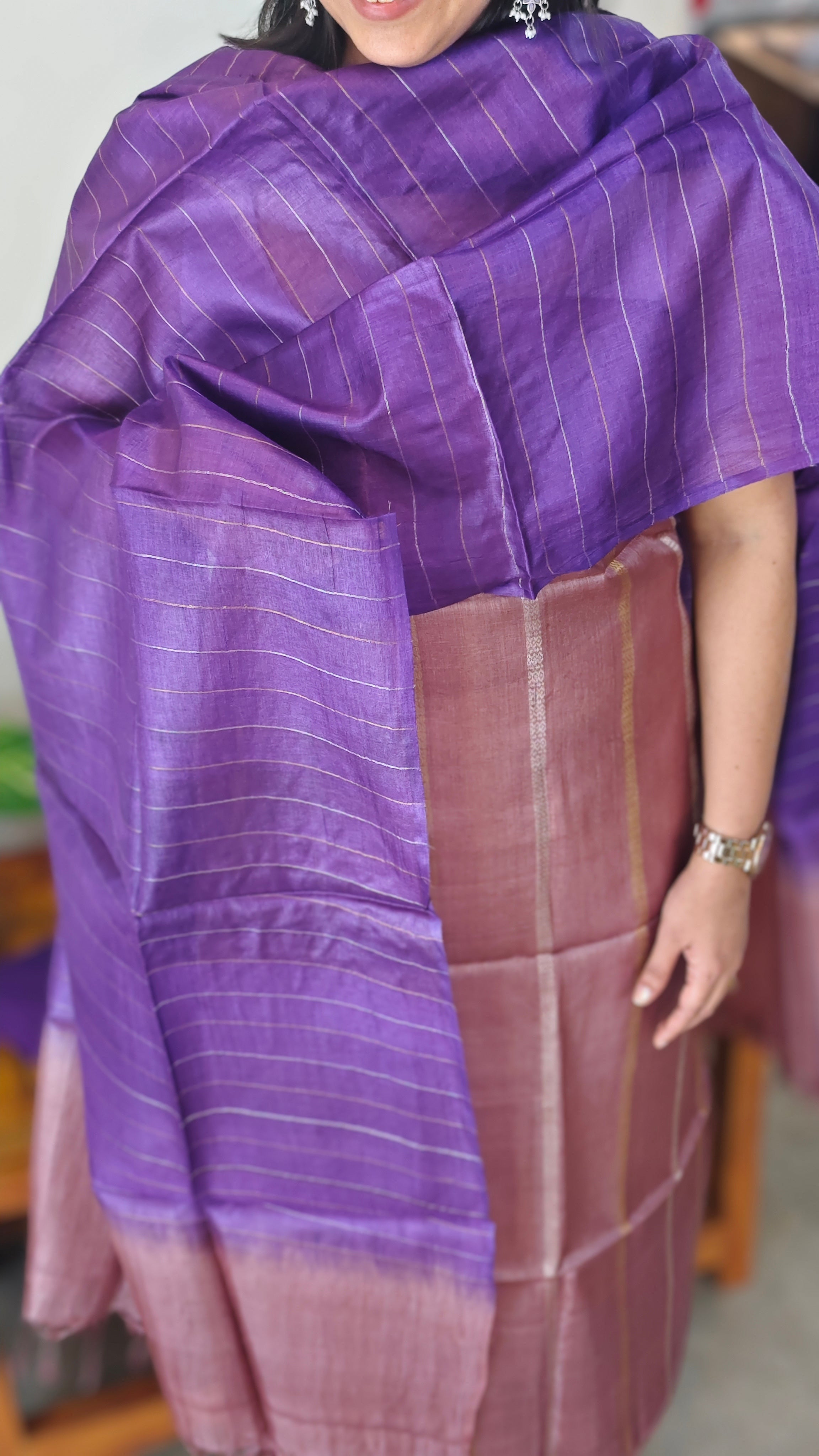 Mauve and purple tussar silk suit