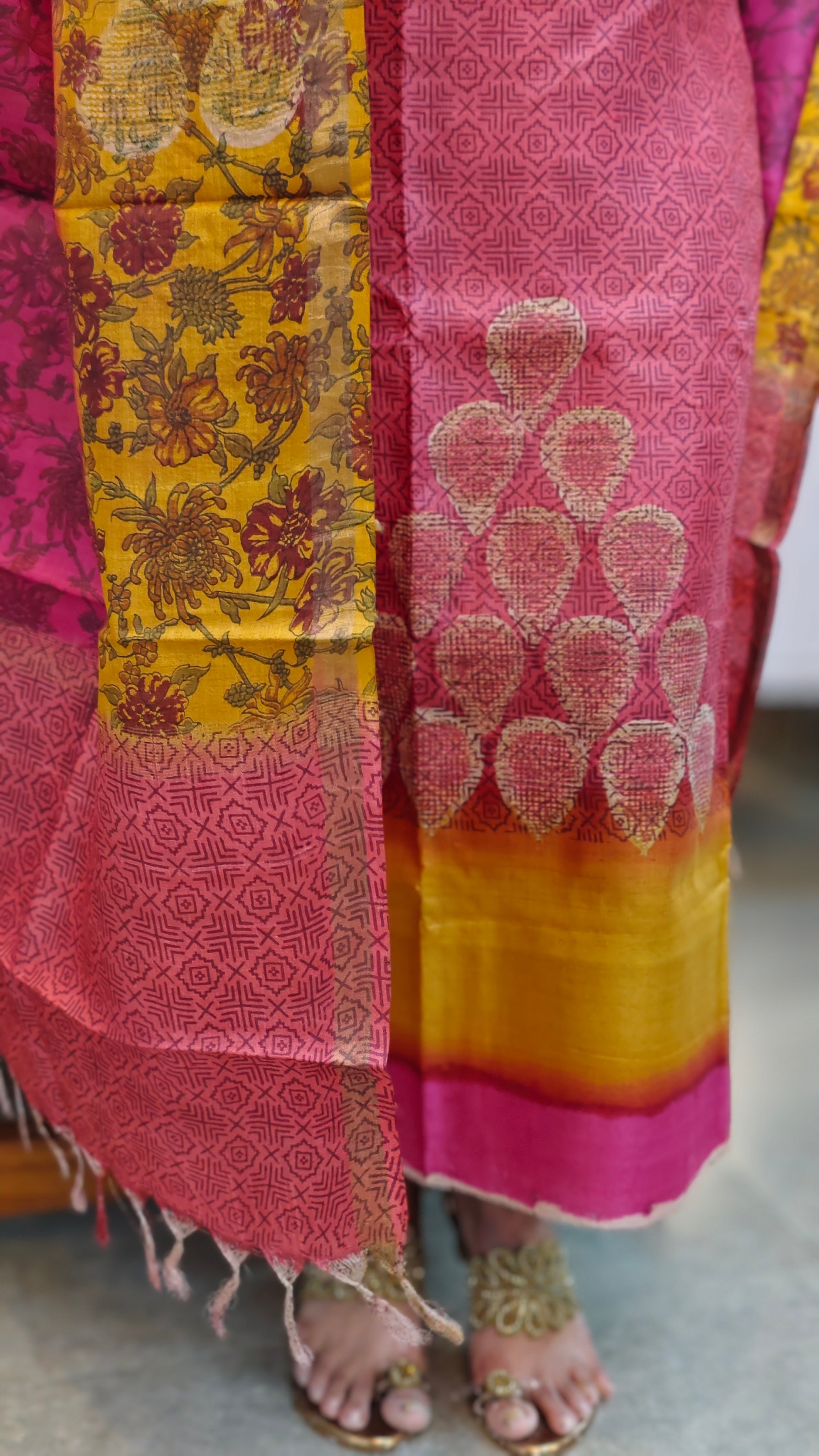 Floral printed tussar silk dupatta