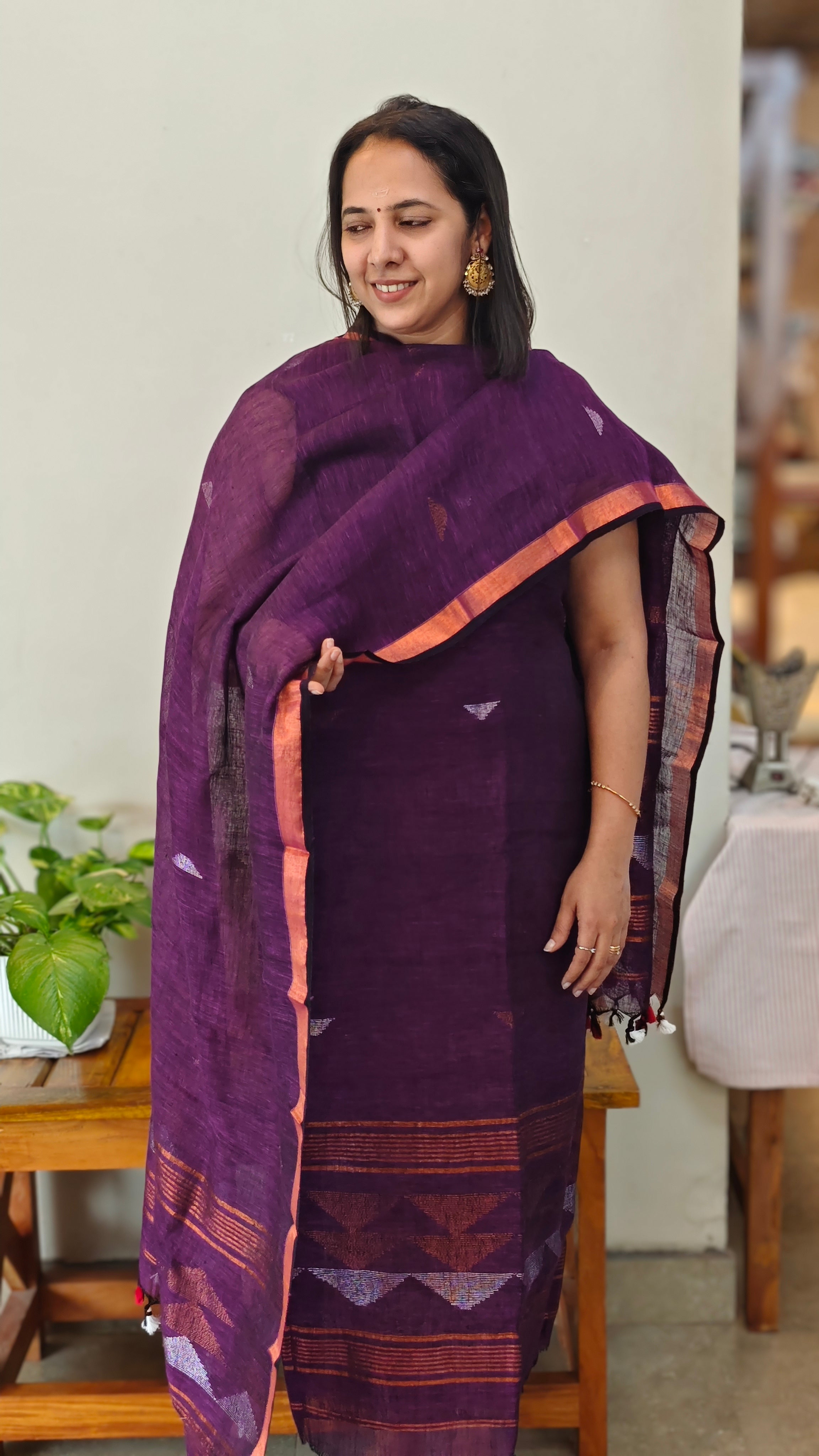 linen suit with jamdani weaving
