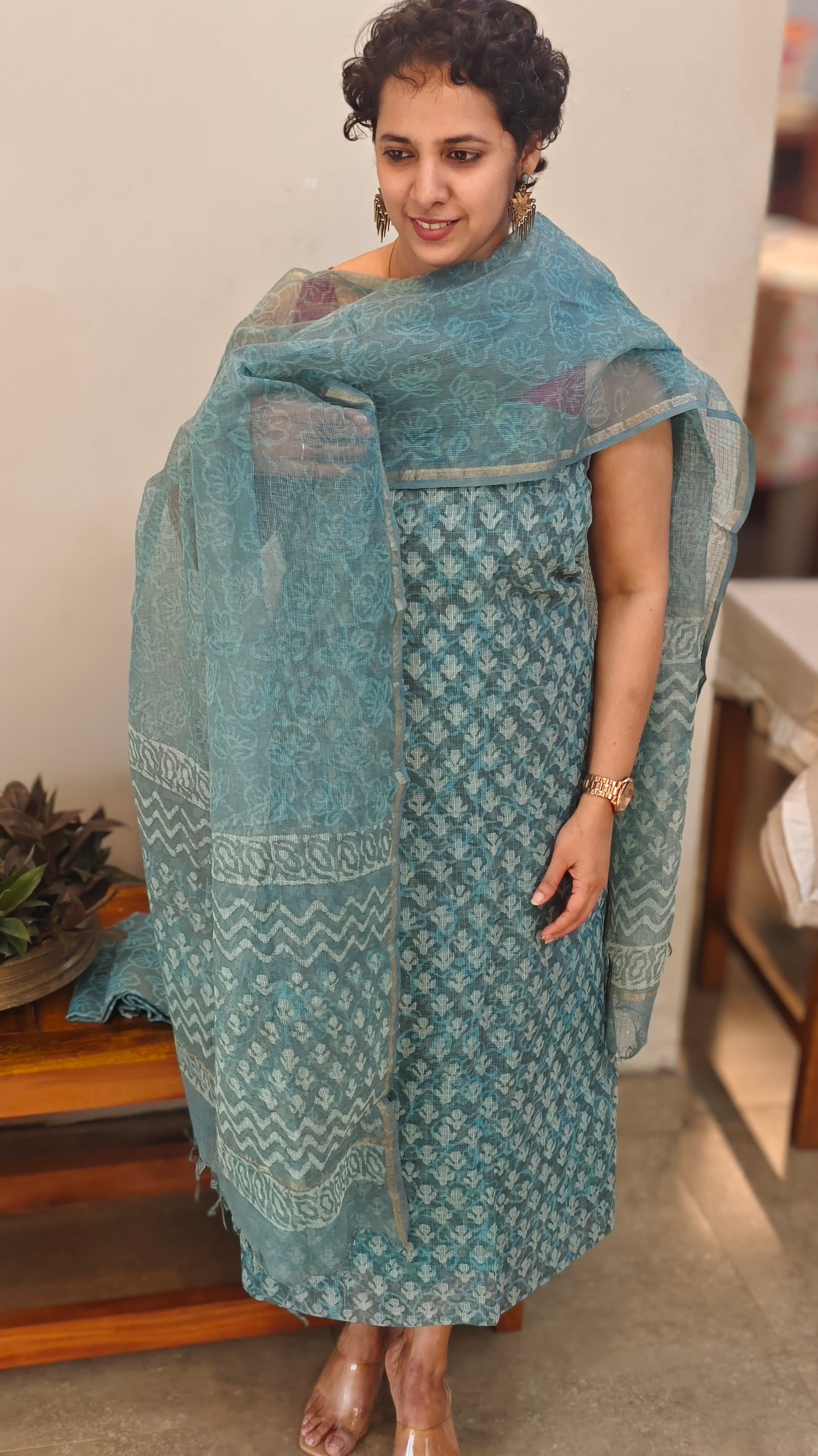block printed top and dupatta