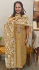 Linen suit with hand embroidered yoke paired with jamdani woven dupatta